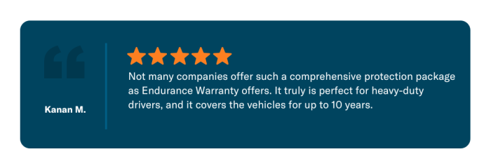 - Highlighting benefits: Testimonials can highlight the specific benefits and advantages of Endurance car warranties, addressing common concerns and objections potential customers may have.